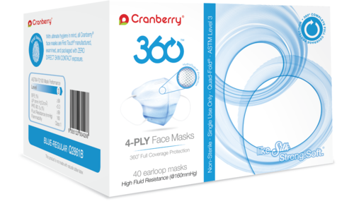 Cranberry 360 4 PLY Face Mask features our revolutionary 360 Design that provides complete full coverage protection. When opened, the mask forms a V-shape that prevents collapse and provides extra breathing volume. Our exclusive curved-edge design permits the mask to lay flat against the skin surface, which easily conforms to different face shapes. Together, the unique shape and curved edges form a complete 360 seal around the nose and mouth.