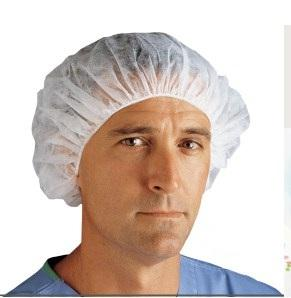 The lightweight comfortable bouffant caps are made of non-woven, spunbond polypropylene fabric. The gentle synthetic elastic provides roomy, secure coverage without binding.
