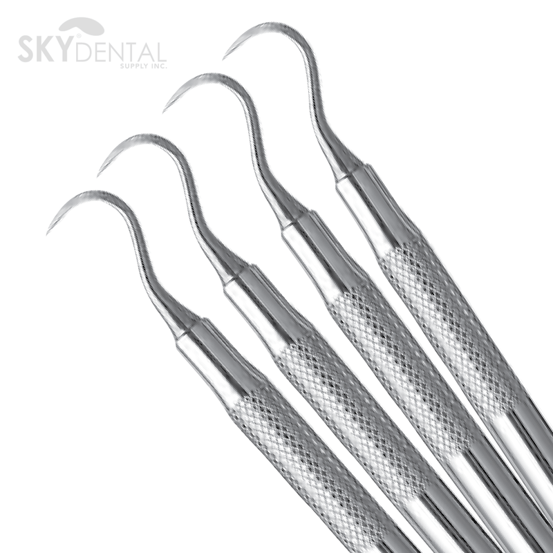 Gracey 13/14: Angulated to reach distal surfaces of all posterior teeth