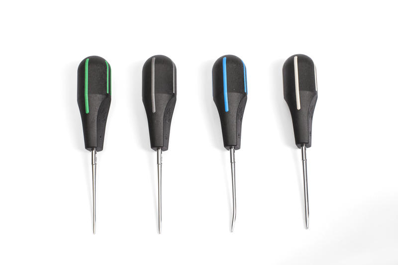 Incorporates the world acclaimed ergonomic handle and a cornered, rigid tip that enables elevation of roots without risk of damaging the instrument. Luxator Forte is the perfect match to Luxator Periotome to end a successful extraction! The unique cornered tip design grasps dentine or root cementum for controlled and safer tooth elevation.
