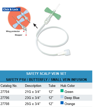 Safety Scalp Vein Sets, Cat No. 27704,27706,27708