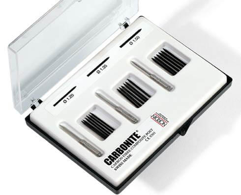 The Carbonite posts are available in 3 different selected diameters (the most used) and in a cylindrical shape with a gentle rounded cone ideal for the root-canal and exactly matched by the calibrated reamers.