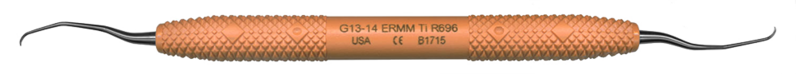 Titanium Gracey implant instrument designed for anterior pockets with an extended reach terminal shank and improved adaptation for straight, extremely narrow periodontal pockets, shorter working toe and blade for small, tight areas. PDT instruments are ideally weighted, featuring the most ergonomic handle with knurling to the instrument shank to provide increased comfort with less hand fatigue and pinch. PDT’s focus on ergonomics greatly reduces the development of musculoskeletal disorders.