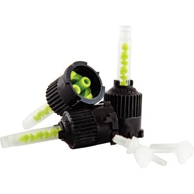 Automix tips with angled root canal tips are used with the Multilink Automix luting material syringes.