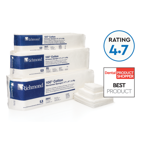 The 100% Cotton Nonwoven Sponge is the perfect general use sponge combining the most desirable characteristics of sponges into one product. It features a smooth, textured and lint-free surface that provides exceptional patient comfort and maximum absorbency. Conveniently available in 3 sizes to meet the needs of daily use in the dental office.