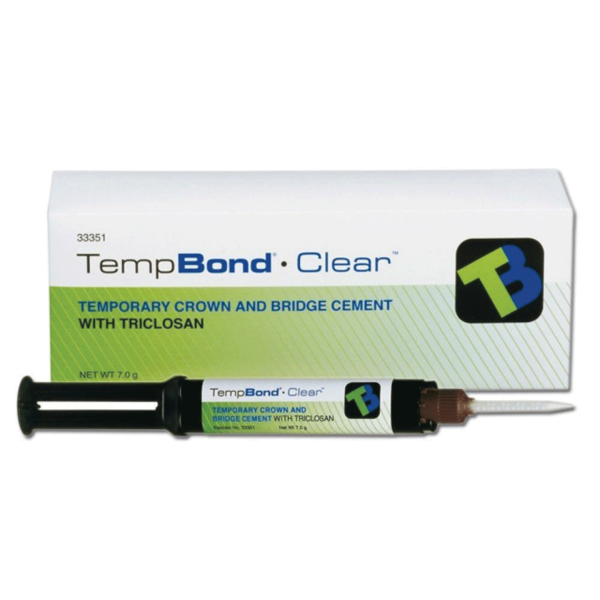 TempBond® Clear™ with Triclosan is the most translucent provisional cement in the market, ensuring superior esthetics. Available in a convenient automix syringe, it offers a dual cure for added security and flexibility, ease of handling, excellent mechanical retention, and easy removal from preparations.