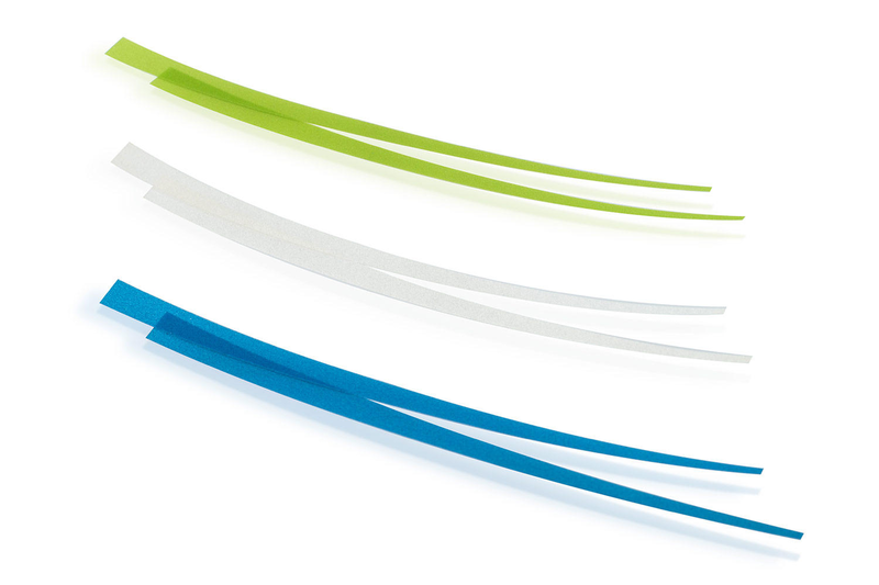 The triangular shape of these finishing and polishing strips with different widths (from 1.5 to 5.5 mm) considerably facilitates its insertion into the interdental space, while protecting the contact point, and allows easy finishing at the optimum height. These strips are available in three color-coded grit sizes and are coated with aluminium oxide.