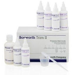 Trim® and Trim® II are leaders in temporary crown and bridge. Fast-setting, non-irritating PEMA formulated for extended use. The powder and liquid in each kit are identical in formula and the powders can be mixed to obtain specialty shades. The resin is dimensionally stable, will not distort when withdrawn from undercuts while setting.