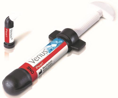 Venus Diamond ONE/Venus Pearl ONE blends seamlessly into the surrounding dentition, independent of the tooth shade, enabling restorations to simply disappear. The image on the right shows occlusally filled cavity teeth A1-D4 with Venus Pearl ONE.