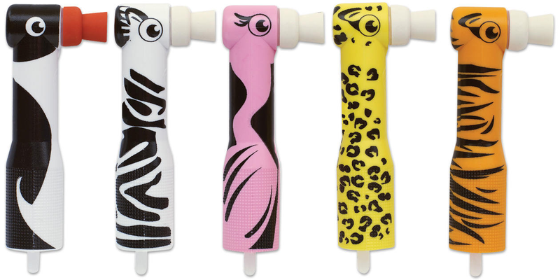 Kids will love picking their favorite animal character. These child-friendly latex-free prophy angles come in an assortment of five zoo favorites: penguins, zebras, tigers, cheetahs, and pink flamingos. Soft, webbed cup. Fits all slow-speed handpieces.